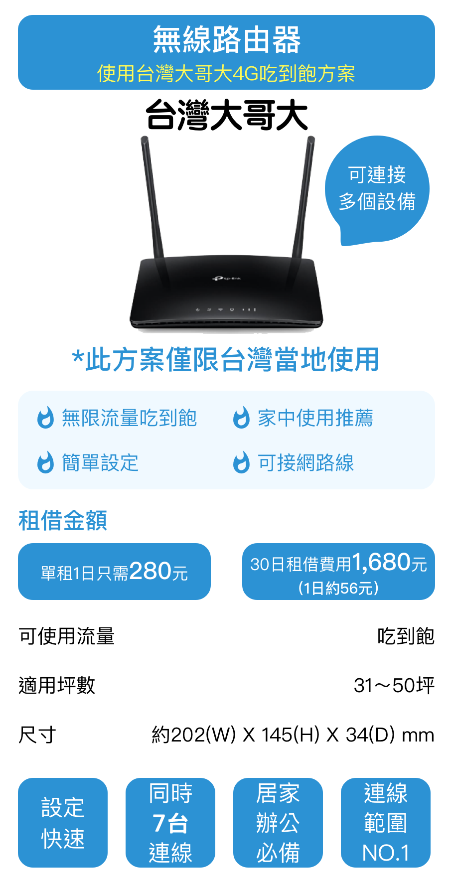 本公司已準備了連結至台灣租借WiFi的Banner,此Banner僅限使用於連結至本網站。